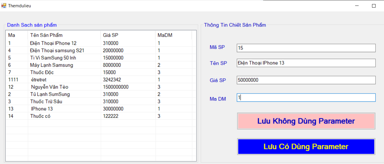 private void btnpara_Click(object sender, EventArgs e) //Thêm có dùng paramater